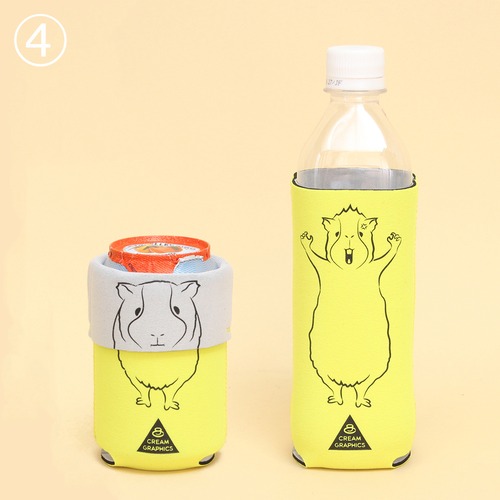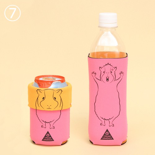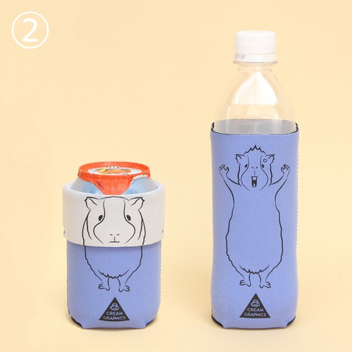 500mlと350mlの2WAYで使えるクージーです。 夏は冷めにくく、冬はあったかい。宮城県石巻のモビーディック社製ウェット素材を使用。 モルモットのイラストは折り返して使うとノーマルFACE。伸ばすと怒りますw ※折りシワ、シルクスクリーンのプリントの割れによる返品・交換は致しかねます。 ※ウェット素材を使用しているのでゴムの匂いがします。